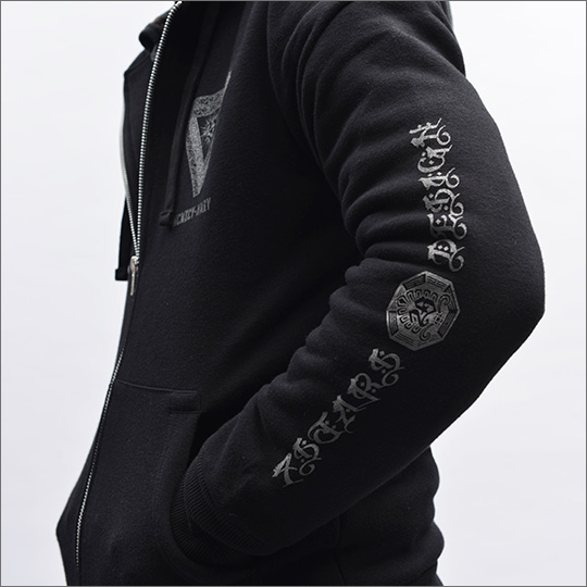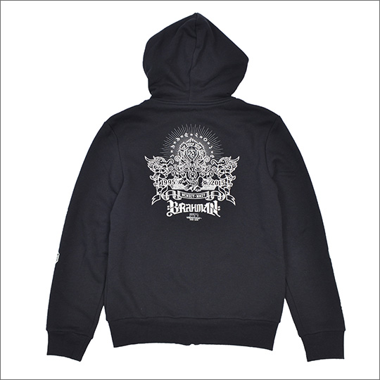BRAHMAN x 7STARS DESIGNのコラボレーションフーディ。背中には、コラボレーションのメインビジュアルとなる尽未来際ロゴの究極進化ロゴが配される。両袖口に配されたロゴのタイプフェイスは、 MIDDLE WAYのキービジュアルのために制作されたBRAHMANオリジナルフォント。7STARS DESIGNによるセルフカバー的なデザイン。胸元の三角形のモチーフは、割り切れない3の数字への問い。プリントカラーはWHITEとダークグレーの2色展開。TACTICS RECORDS ONLINE SHOP限定商品。